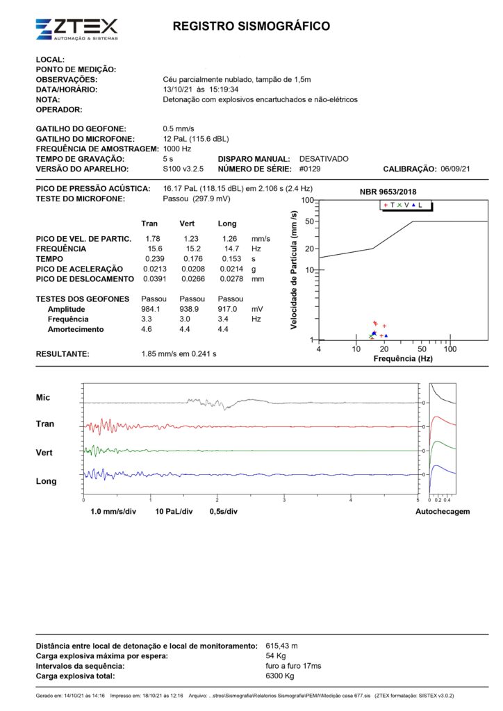 O serviço de Ensaio de Sismografia da ZTEX é acreditado pelo INMETRO, garantindo monitoramento preciso e confiável de vibrações.